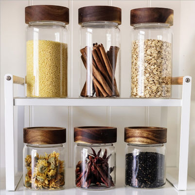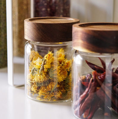 Dos cartuchos claros de madeira vazios de vidro superiores amigáveis da cozinha da tampa do frasco do disco de Eco frasco de vidro transparente