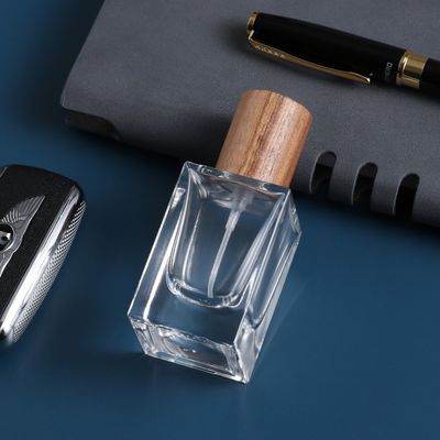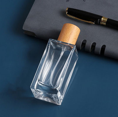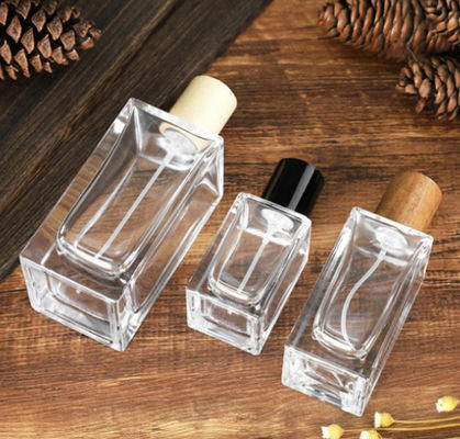 Garrafa de perfume cosmética de vidro Crystal Glass Bottles dos recipientes da tampa de madeira de alta qualidade