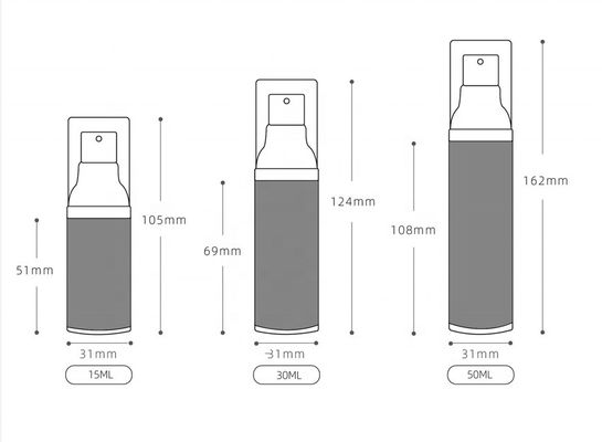 recipientes cosméticos plásticos da garrafa de vácuo da garrafa de 30ml 50ml Matte Black Spary