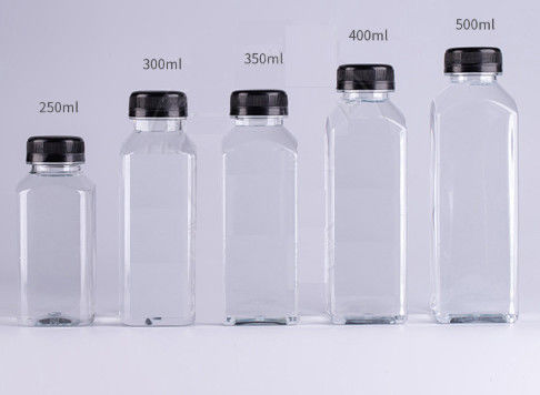 Garrafa de espremedor PET de plástico quadrado francês sem BPA 12 onças para garrafas de bebidas de plástico de frutas laranja