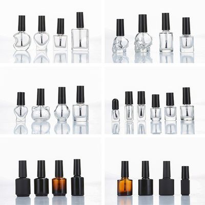 Recipientes cosméticos de vidro de alta qualidade pretos personalizados da garrafa 10ml 15ml do verniz para as unhas com escova