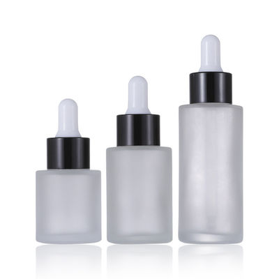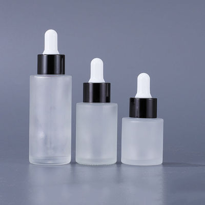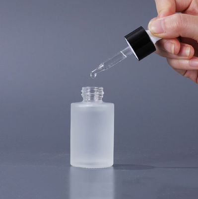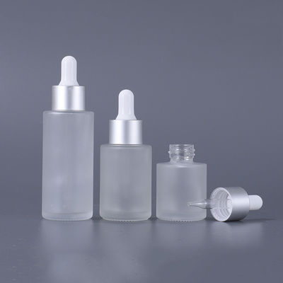 Os recipientes cosméticos de vidro empurram horizontalmente a garrafa cosmética geada do conta-gotas do soro