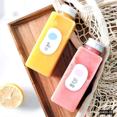 garrafa plástica da bebida do quadrado descartável criativo do suco 400ml