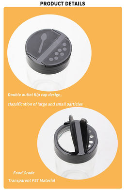 Salpique a especiaria de tempero plástica de Shaker Spice Jar Clear Salt das garrafas com aleta