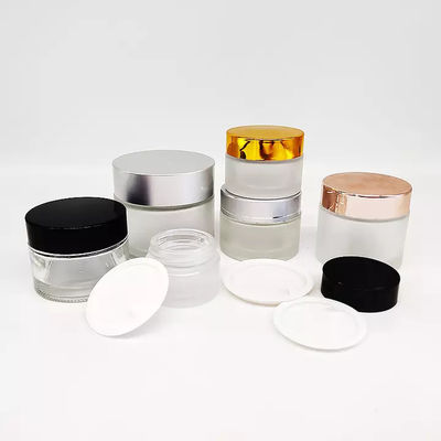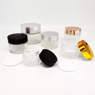 Frasco de vidro cosmético claro por atacado com os recipientes cosméticos de vidro luxuosos de prata da tampa 100ml