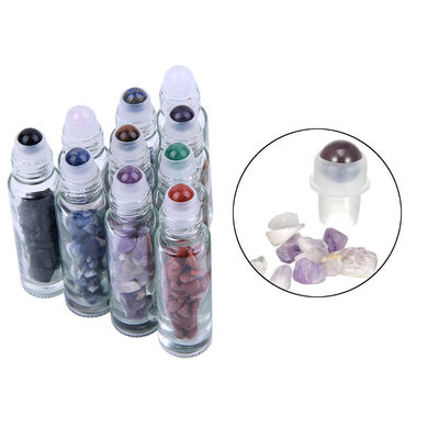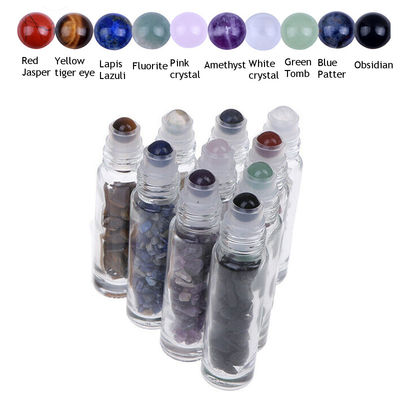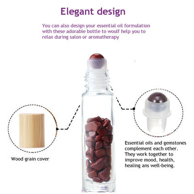 Rolo de vidro na garrafa com a garrafa do rolo do óleo essencial de pedra preciosa com tampão de bambu