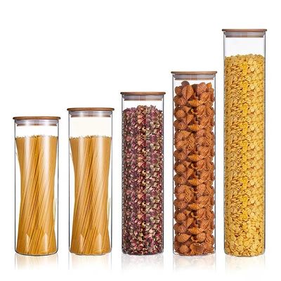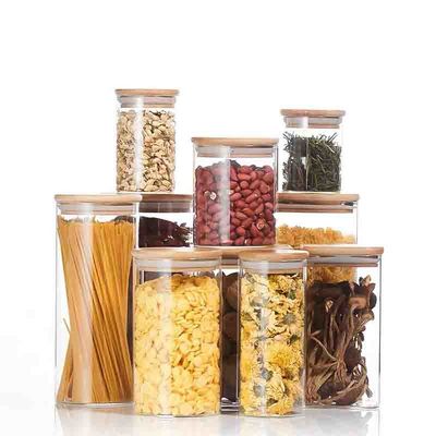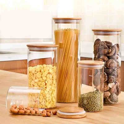 O armazenamento de vidro engarrafa o armazenamento de vidro apertado dos frutos secos do armazenamento do frasco do ar com tampa de bambu
