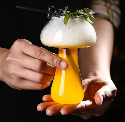 Bebida transparente original nova da forma do cogumelo 285ml para a garrafa de vidro do cocktail da loja da barra