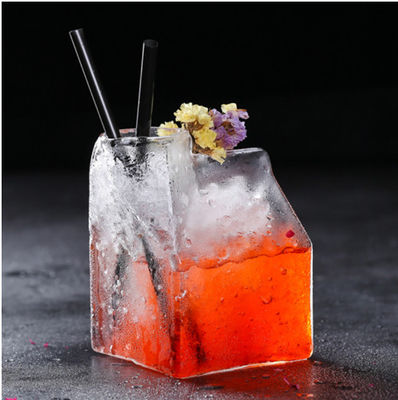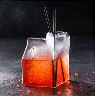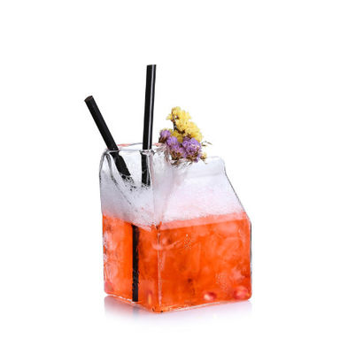 Feito do vidro de borosilicate de alta qualidade, a forma de uma caixa transparente do leite tem um sentido original do projeto. Pode ser usado na barra ou na casa. Com uma capacidade de 350ml, pode guardar cocktail, uísque, tequila e vários tipos de sucos de fruta.