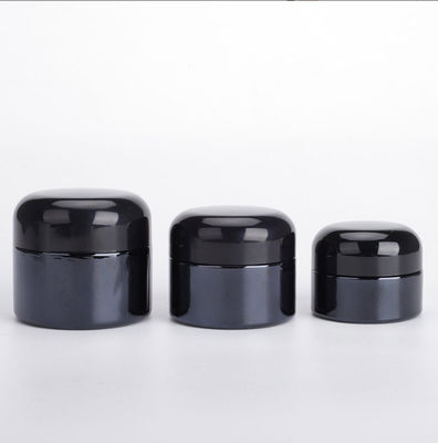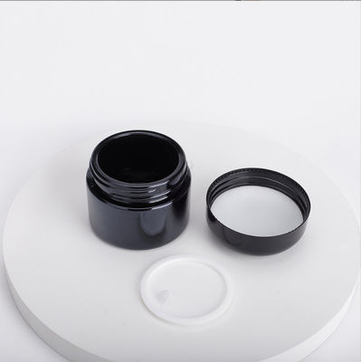 Frasco de vidro preto com a gaxeta da tração da mão, a gaxeta do PE e a tampa. Engrosse a garrafa e use materiais eco-amigáveis. Usado para o empacotamento dos cosméticos, do creme do olho, do creme de cara, etc.